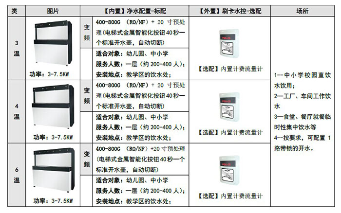 ----》典型機(jī)型:ER-42、ET-43、EW-44、EW-46,可滿足中小學(xué)課間操集中供應(yīng)大流量的溫度適宜的直飲水,符合政府校園直飲水項目的各技術(shù)指標(biāo)